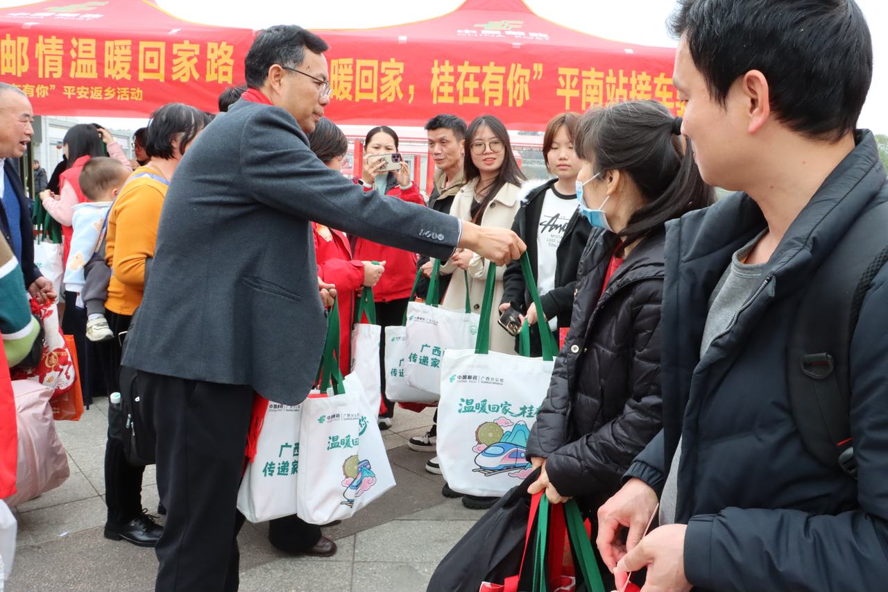 为做好服务保障,县总工会提前统筹部署,联合平南邮政等单位精心筹备。在平南南站出站口悬挂欢迎横幅,设立服务台,备好热姜茶和装有围巾、春联及就业创业、工会普惠服务等政策宣传资料的暖心慰问礼包,营造浓厚返乡氛围,让返乡人员刚下车就感受到家乡的温暖。
