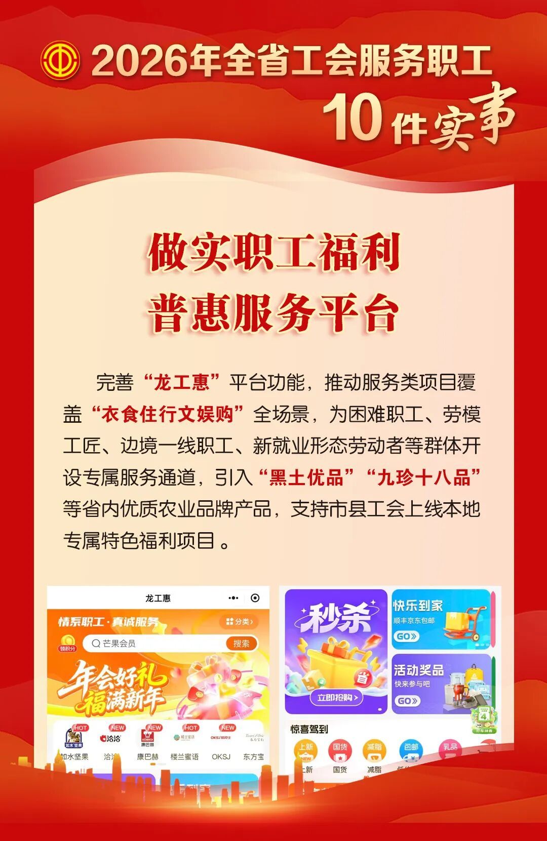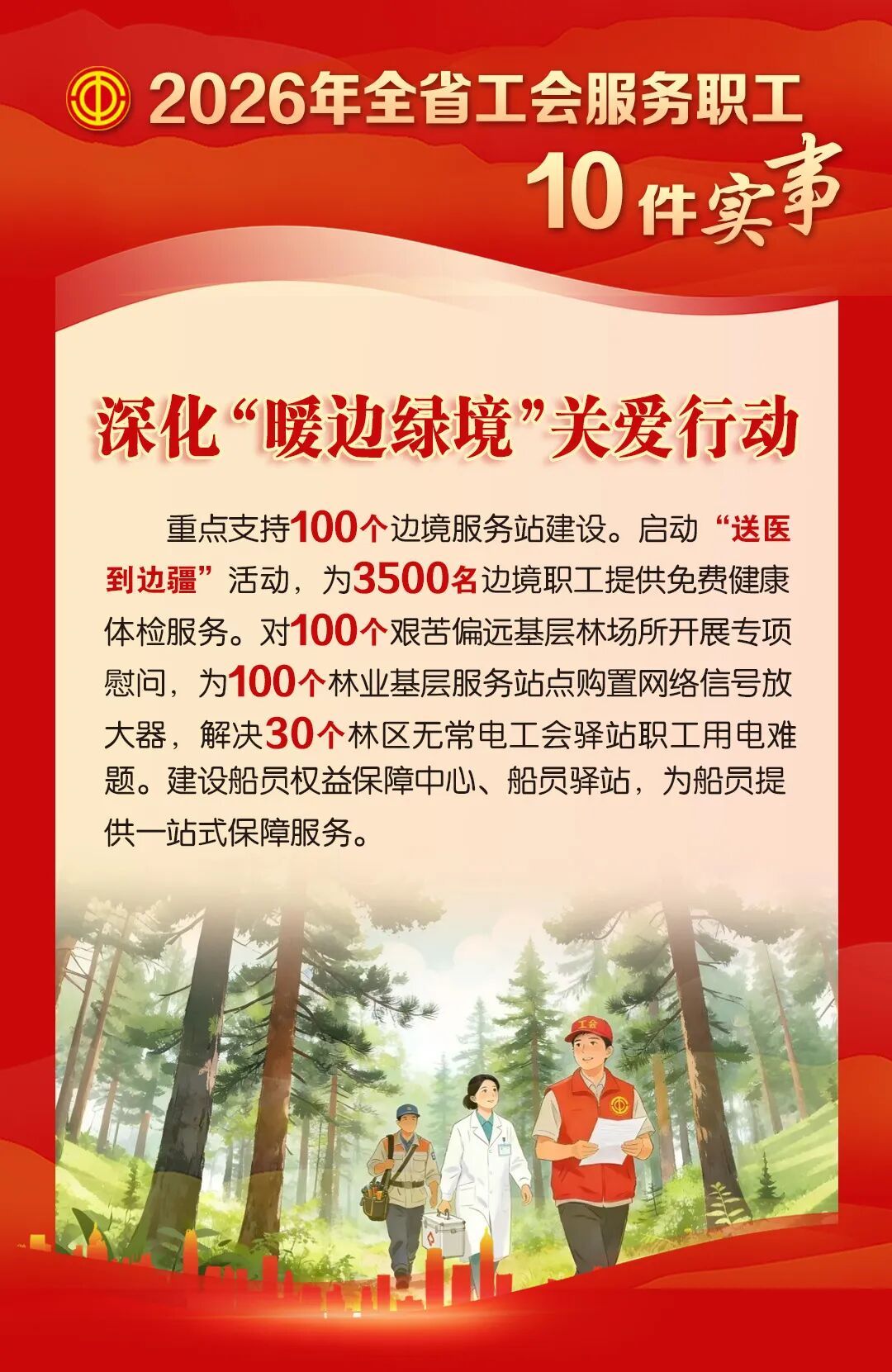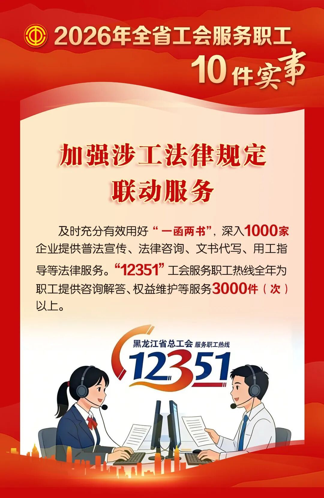 就业援助、法律援助、健康服务、福利提升,关注一线职工、困难职工、新就业形态劳动者等群体,努力实现服务全覆盖、关爱零距离......2026年黑龙江省总工会服务职工10件实事,直指职工最关心、最直接、最现实的利益问题。