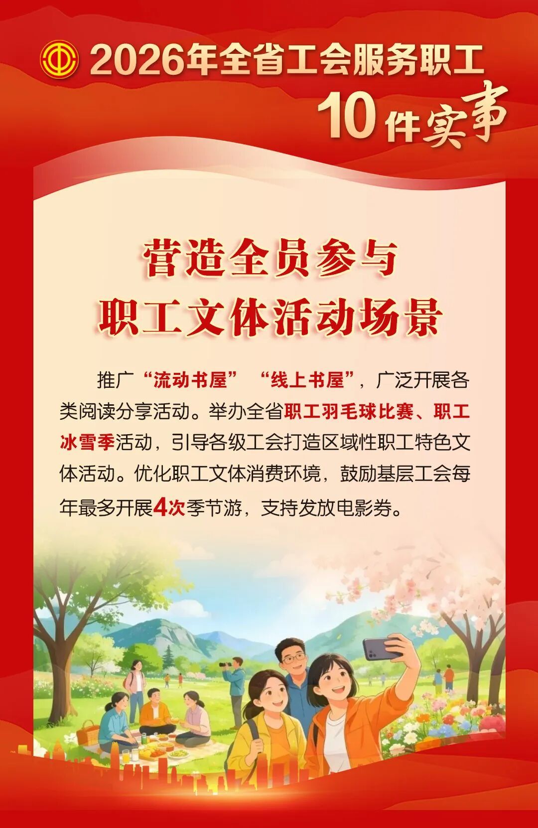 2026年,海南省总工会聚焦满足职工多元化需求,谋划服务职工群众十件实事,涵盖人文关怀、文体活动、技能提升、权益维护、生活服务5个方面,切实增强全省职工的获得感、幸福感、安全感。